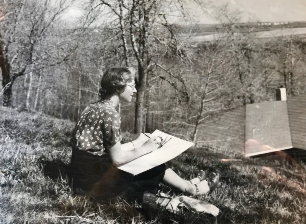 This photo of Mary Parris sketching would have been on display at a gallery during one of her art shows. She sketched and painted all her life. Mary Parris passed away in 1988 at 74 years of age.